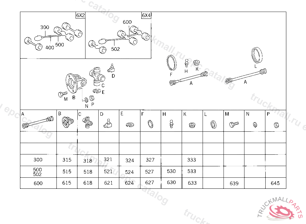 PROPELLER SHAFT FROM REAR AXLE I TO REAR AXLE II 740 MM,5 249277,184 KW (250 PS) 625.0055 322984,184 KW (250 PS) 625.009 PART IS ONLY OR ALSO SUPPLIED AS RECONDITIONED PART