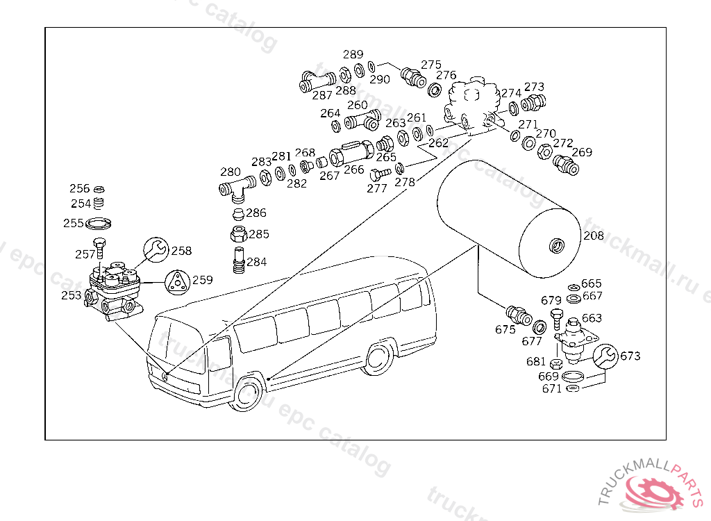 LINE FROM AIR RESERVOIR TO T-FITTING, USED WITH AIR BRAKE FROM CHASSIS 209476 ALSO INSTALLED ON 209273,209446,209461,209465,209471,209474.