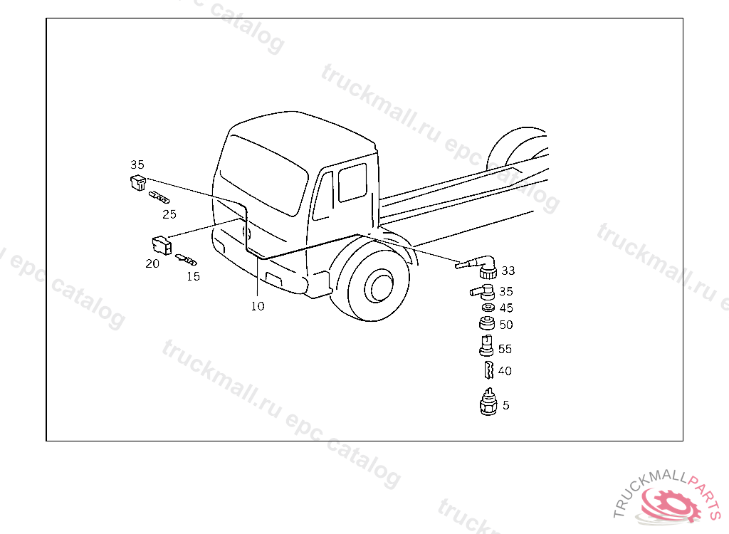 PIN BUSHING HOUSING. PLUG HOUSING FROM CHASSIS/CAB CONNECTION POINT TO TACHOGRAPH