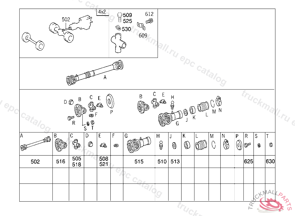 PROPELLER SHAFT FROM TRANSMISSION TO REAR AXLE 590 MM, APPLICABLE TO TRANSMISSION 718.630