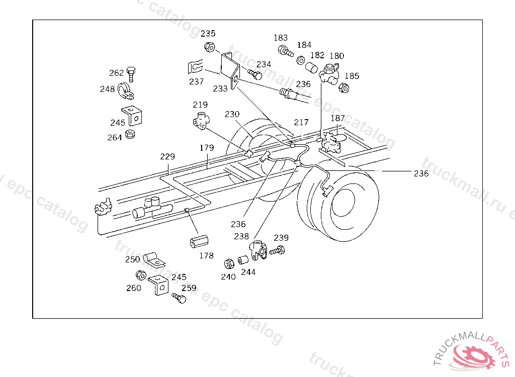 LINE FROM DISTRIBUTOR TO BRAKE HOSE ON REAR AXLE 1100 MM