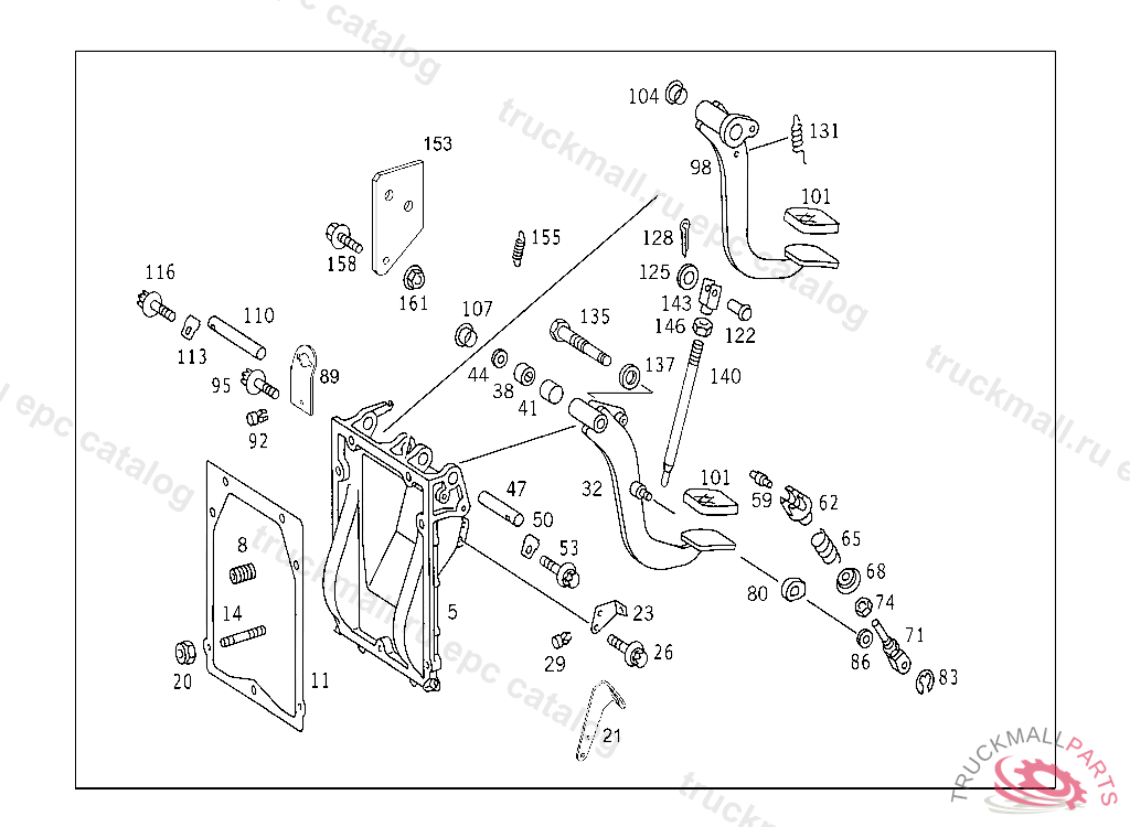 LOCK CLUTCH AND BRAKE PEDAL PINS TO BEARING BRACKETS