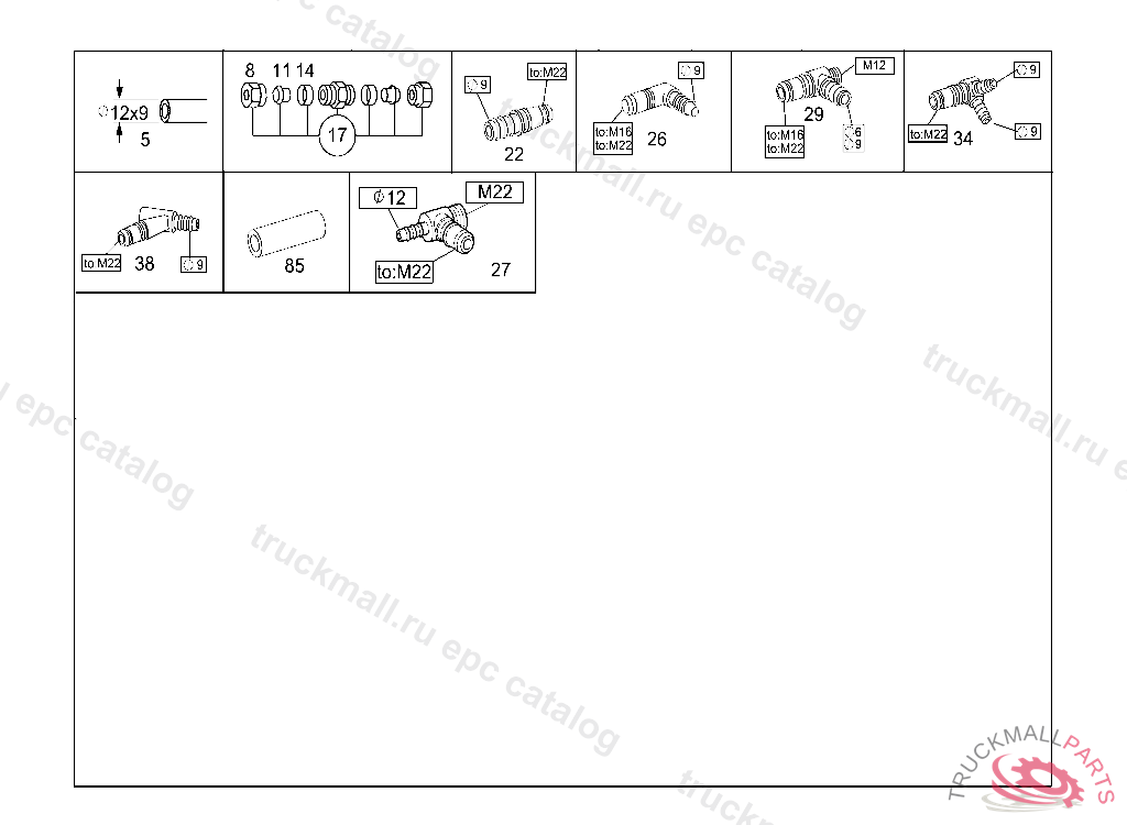CONNECTION PIECE COMPRESSED-AIR-LINE PLUG-CONNECTION TO M 22, 9 MM, VOSS 232