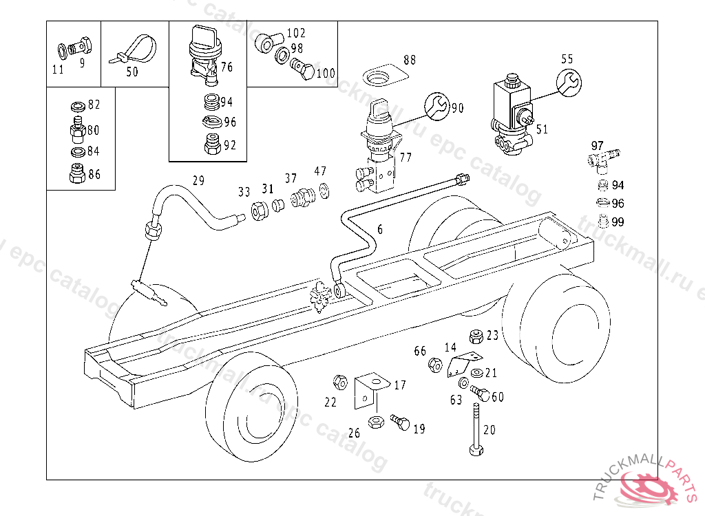 LINE FROM FOUR-CIRCUIT PROTECTIVE VALVE CONNECTION "24" TO 3/2-WAY VALVE,NB961597