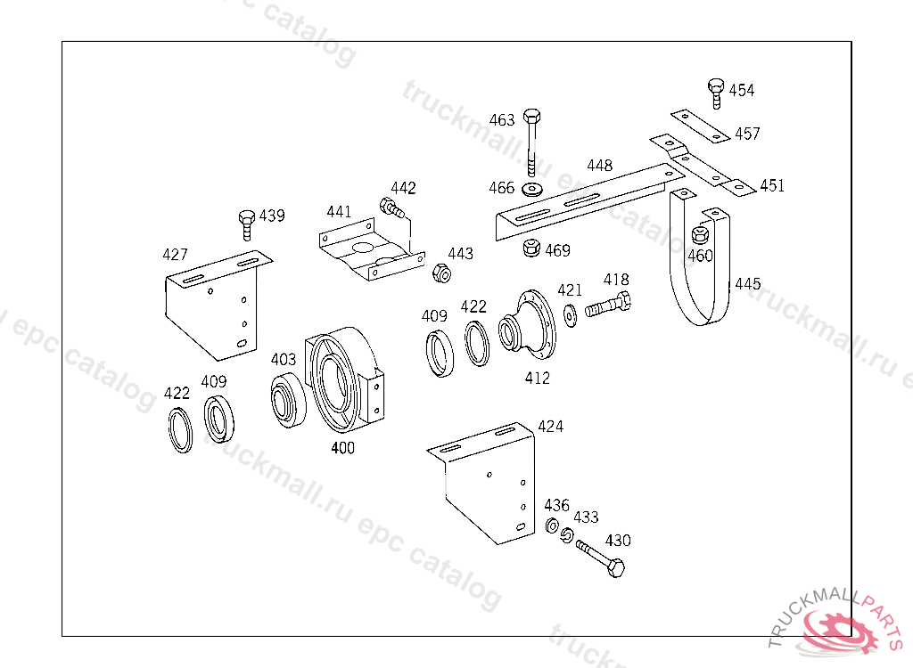 PROTECTIVE CAP FOLLOWER FLANGE, INTERMEDIATE BEARING, BALL BEARING IN RUBBER SEAT