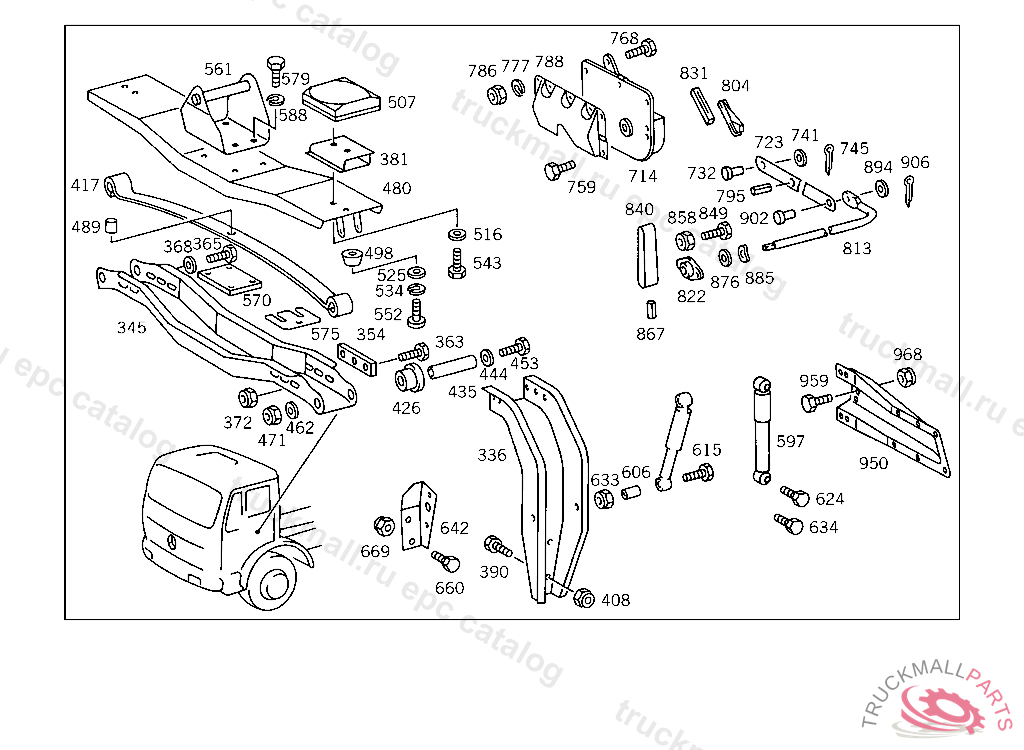 MOUNTING , MODEL 416,417 FOR USE WITH MEDIUM-LENGTH MERCEDES-BENZ CAB FIRST EXHAUST STOCK OF OLD PARTS UP TO IDENT NO. 4 837892, Replaced By: A6208901603