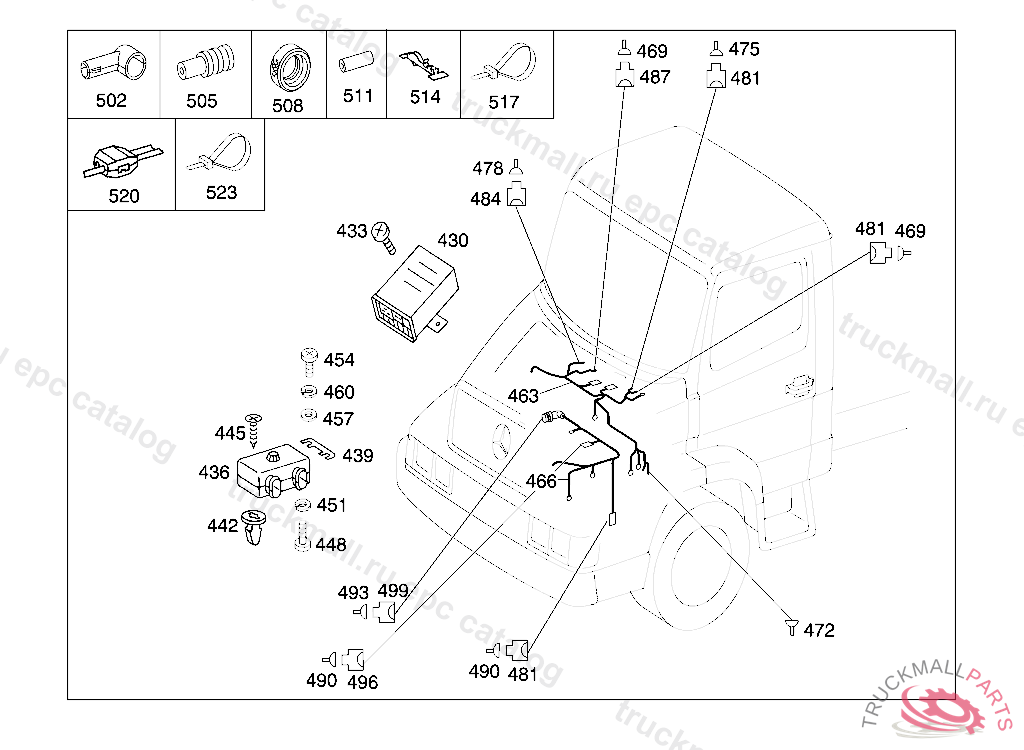 CABLE HARNESS FROM REAR CABLE CONNECTOR TO TAIL LAMP AND TO RIGHT SIDE MARKER LAMP,D 055050