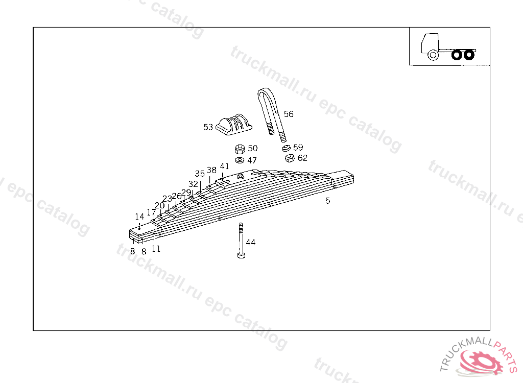 REAR SPRING (TRAPEZOIDAL SPRING),NUMBER OF LEAVES: "13", ONLY FOR USE WITH 624 320 02 06 REAR SPRING