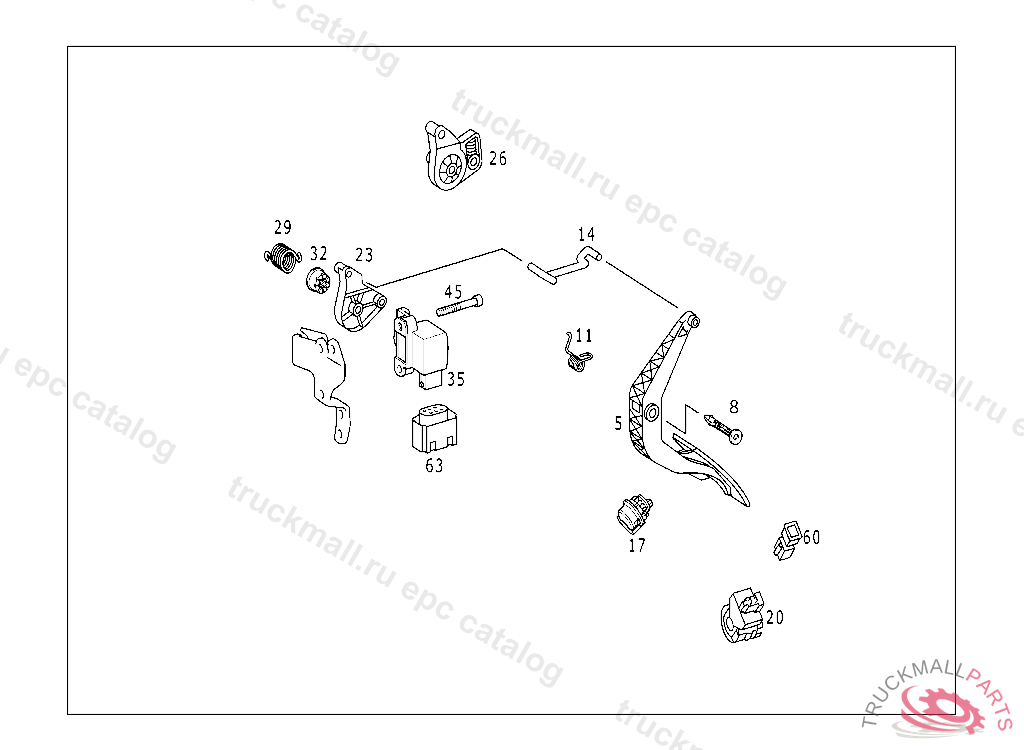 BOLT PEDAL VALUE SENSOR WITH LEVER TO FASTENING PLATE M5X25, J 48100520010301801