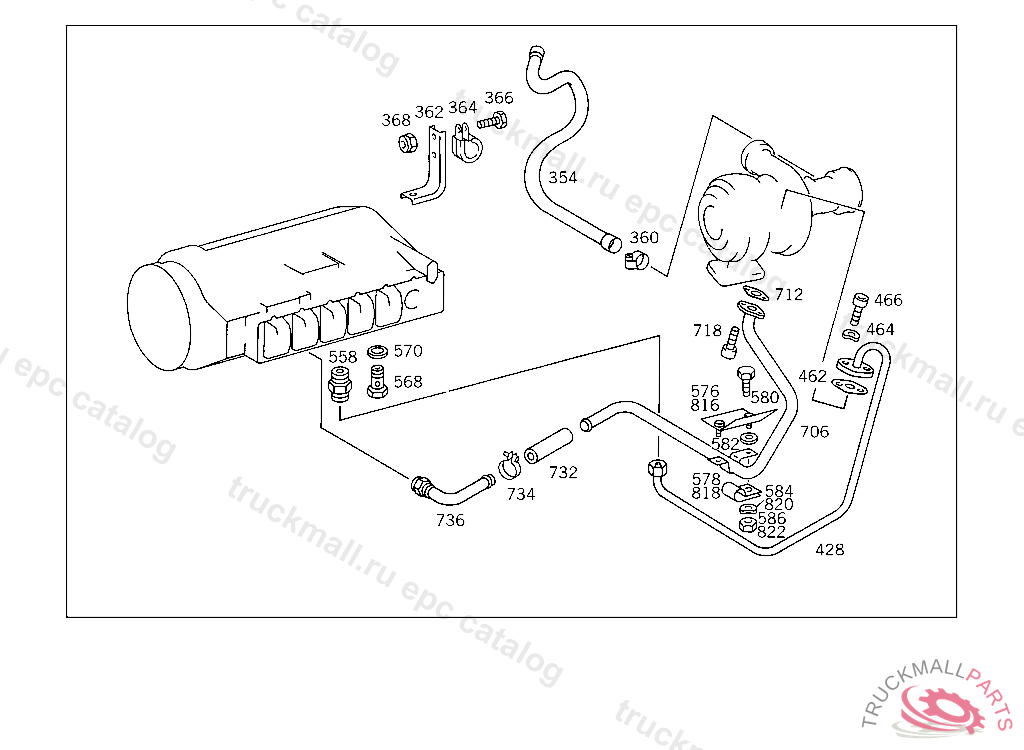 OIL LINE , EXHAUST STOCK OF OLD PART NUMBERS FIRST WITH TURBOCHARGER,MAKE KKK, Replaced By: A4221800420