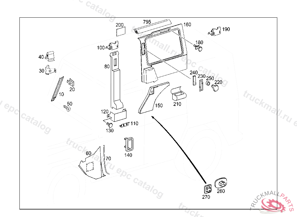 ESCUTCHEON B-PILLAR ON THE RIGHT