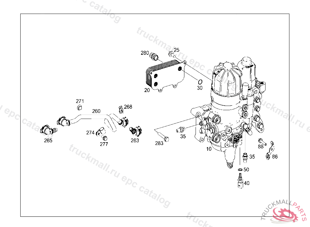 COOLANT LINE RETURN LINE: FROM FUEL FILTER TO OIL COOLANT MODULE