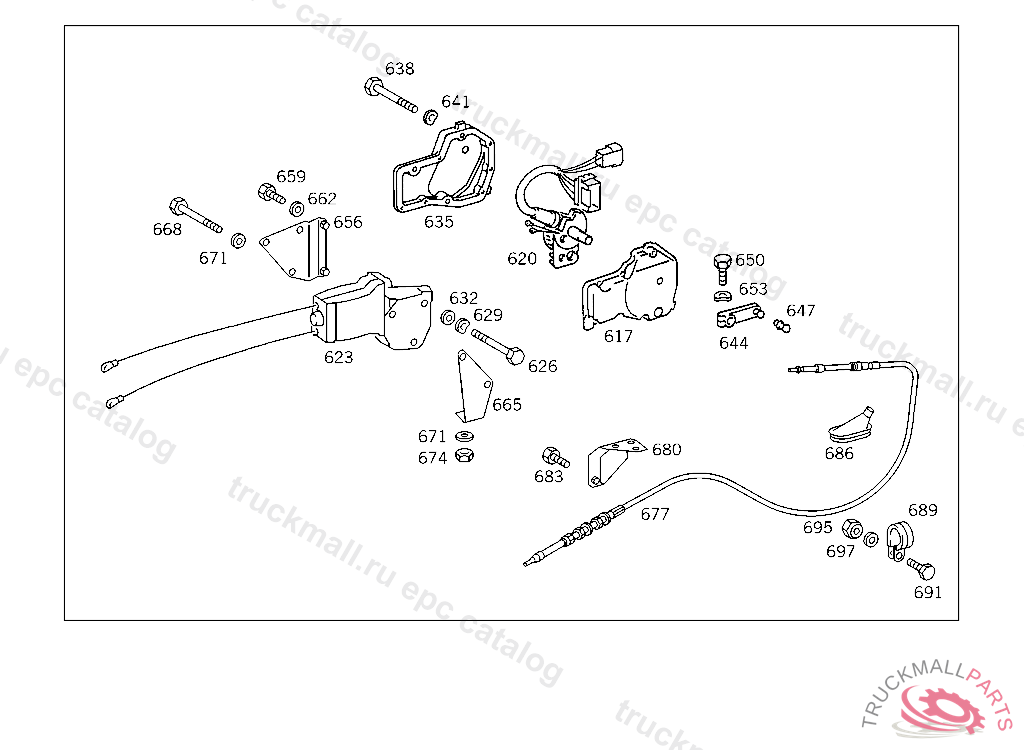 ROD FROM CONTROL LEVER TO INTERMEDIATE SHAFT AT ENGINE, UP TO IDENT NO. 941505 EXCEPT FOR 899081-941503 ONLY WITH OM601/OM602 ENGINE