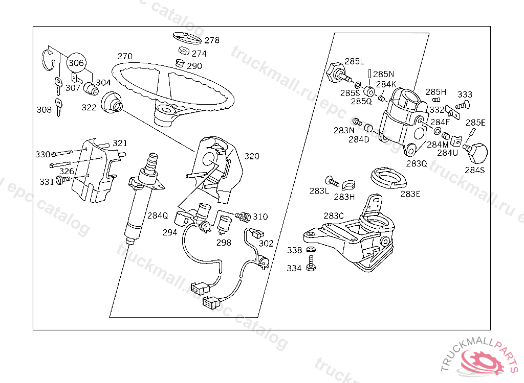 STEERING COLUMN END , FIRST EXHAUST STOCK OF OLD PARTS FROM IDENT NO. 4 727154 - 5 468371, Replaced By: A3054600452