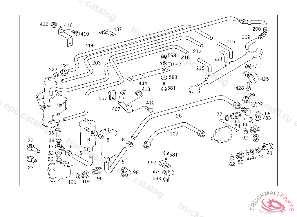 CLAMP DELIVERY AND SUCTION LINES TO STEERING