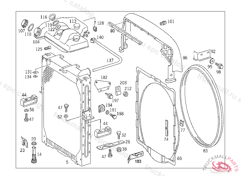 RADIATOR , FIRST EXHAUST STOCK OF OLD PARTS UP TO IDENT NO. 5 752618, Replaced By: A6555002103