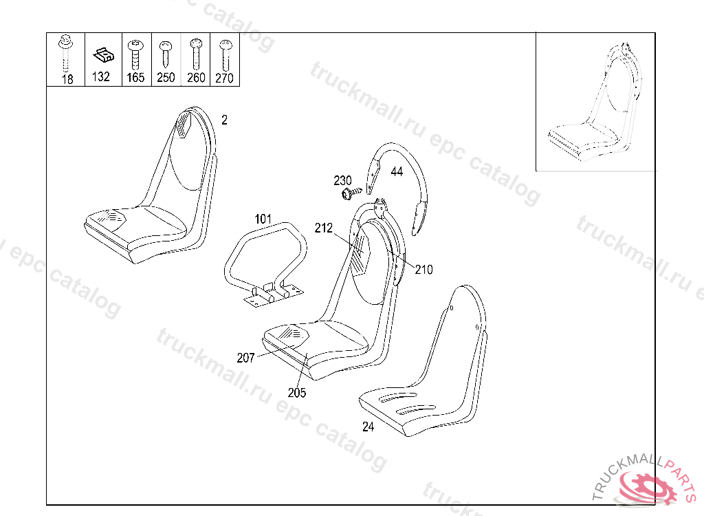 BACKREST PASSENGER SEAT, ONE-AND-A-HALF SEAT, TO BE ORDERED ONLY ON COMMISSION AND INDICATING ALSO ALL THE VEHICLE DATA REQUIRED