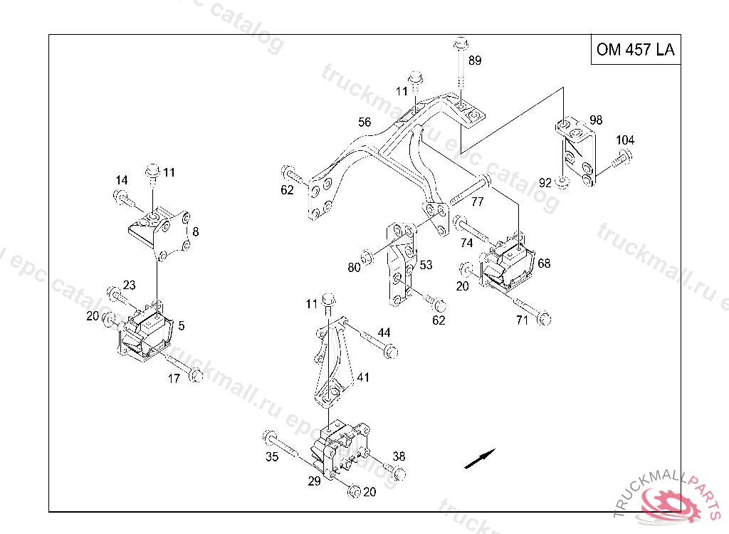 ENGINE SUPPORT AT TRANSMISSION OM 457 / OM 906, ZF