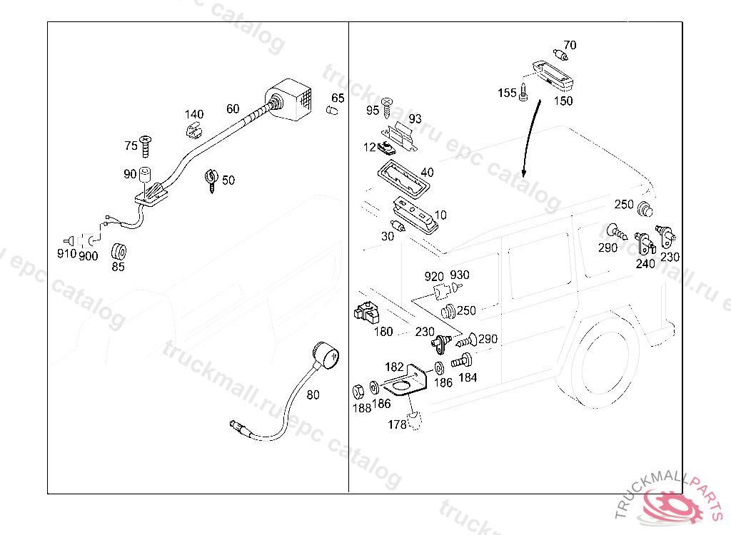 READING LAMP ROOF REAR RAIL, X 19271120110531