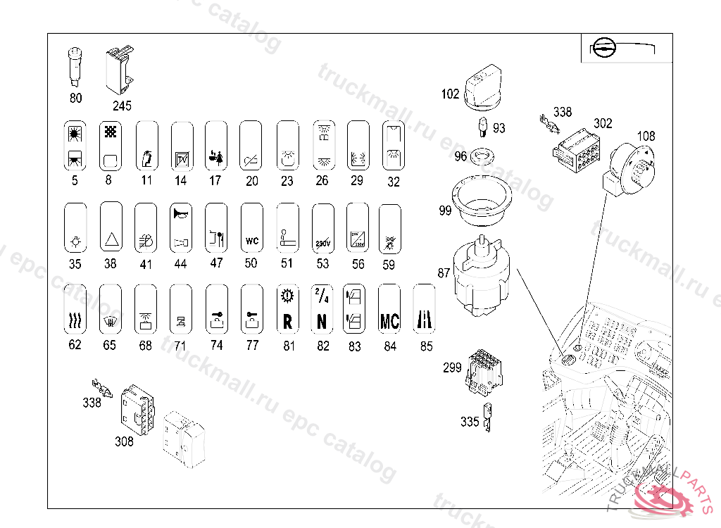 SWITCH LUGGAGE COMPARTMENT, ON THE RIGHT