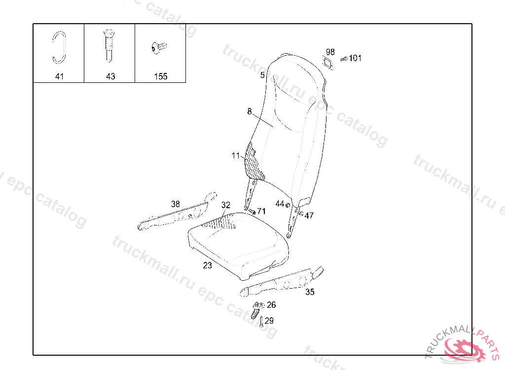 BACKREST RIGHT WITH THIN UPHOLSTERY, STATE IDENT NO. WHEN ORDERING