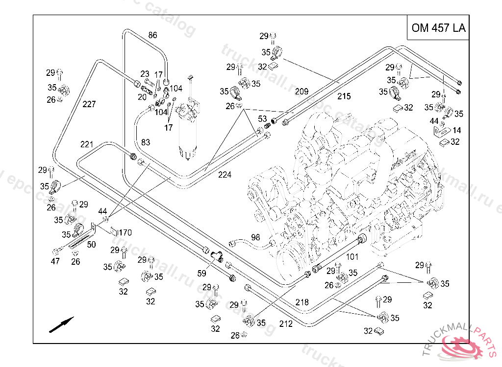 CLAMP DELIVERY AND SUCTION LINES TO ENGINE, FRONT