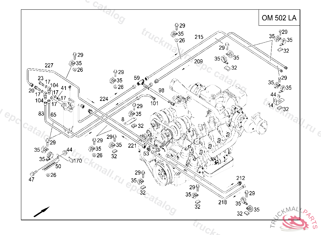 CLAMP DELIVERY AND SUCTION LINES TO ENGINE, FRONT