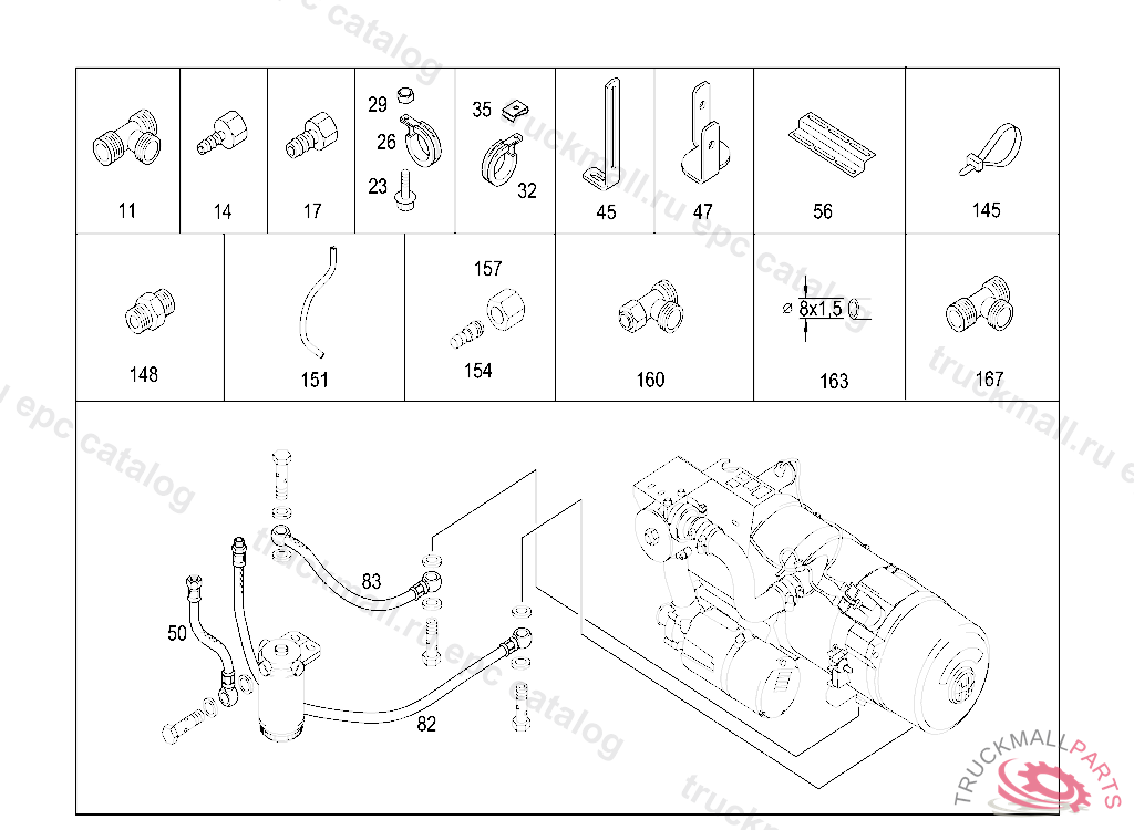 CLAMP SUCTION/DELIVERY/RETURN LINES 15/15 MM, Replaced By: A0019950642