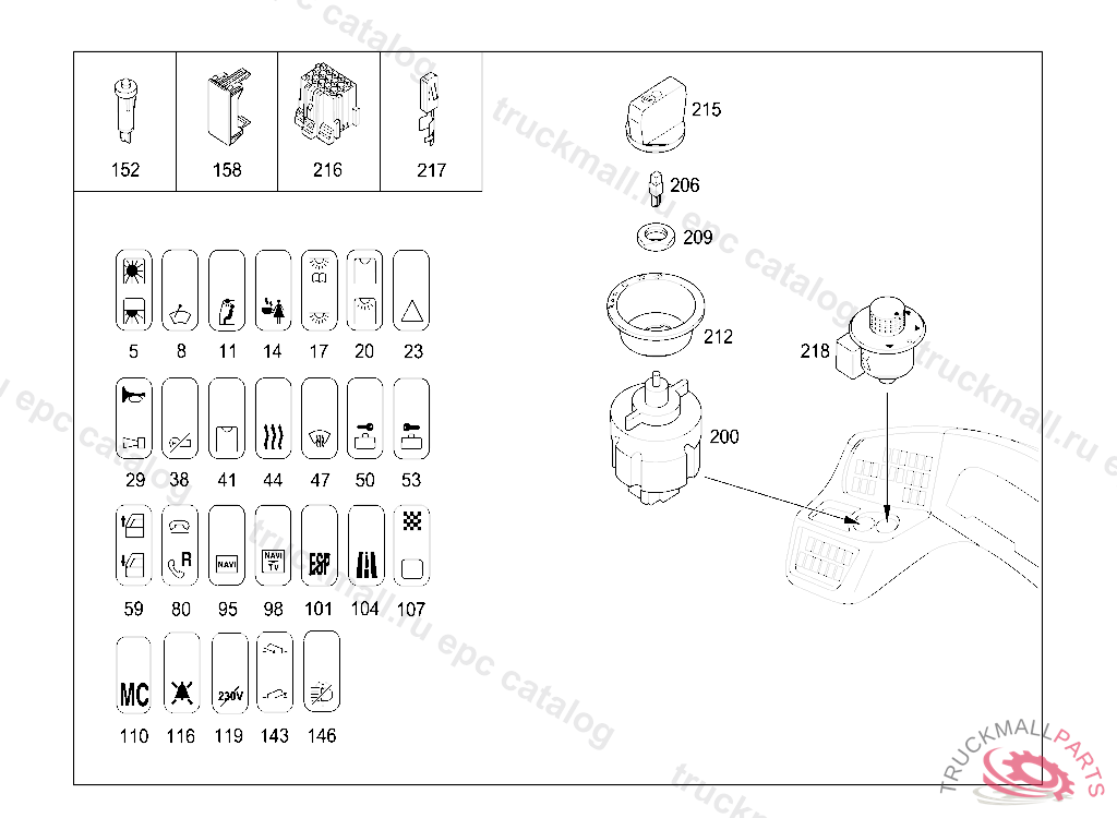 SWITCH LUGGAGE COMPARTMENT, ON THE LEFT