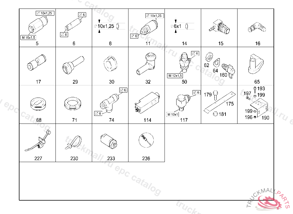 ELBOW FITTING CONNECTION OF COMPRESSED AIR LINES TO M 16 / 4 MM ,VOSS 232,KAN 33/00 AS OF PRODUCTION BREAKPOINT DATE 01.01.2004