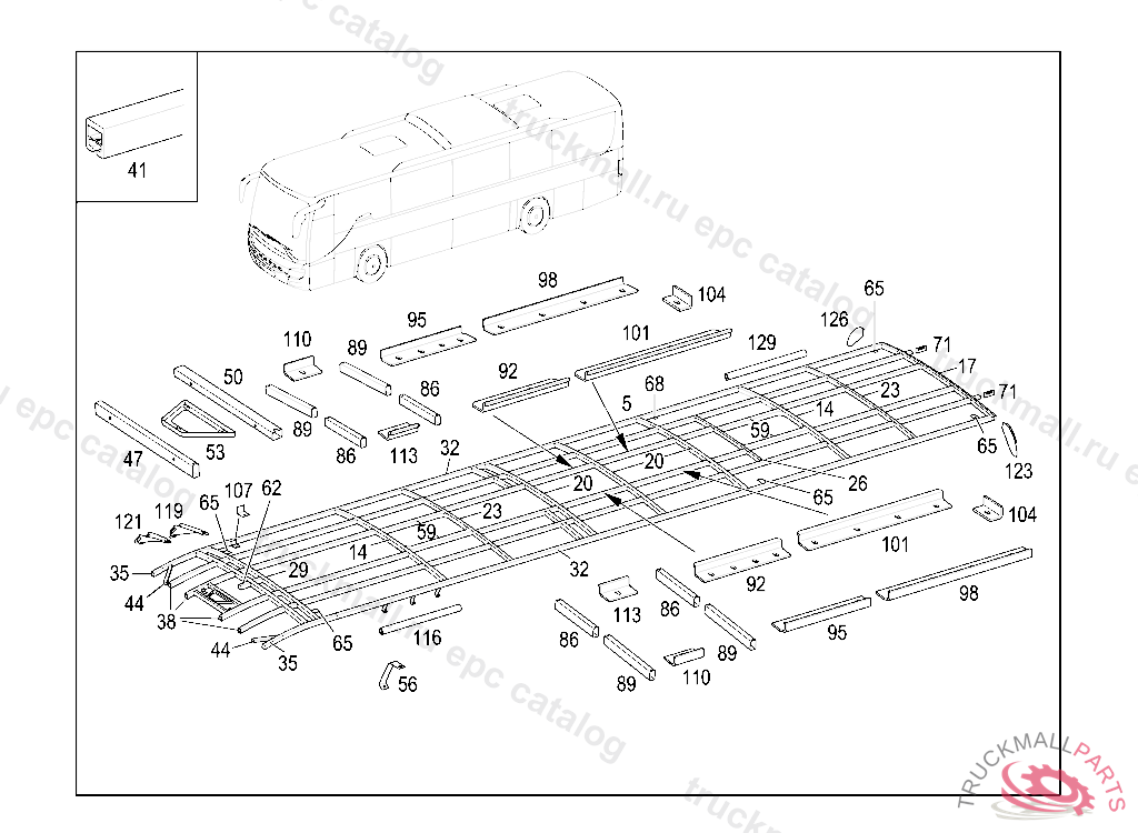 RAIL , A 627 651 03 38 RAIL 40 X 40 X 2230 MM TO BE ADAPTED DURING ASSEMBLY