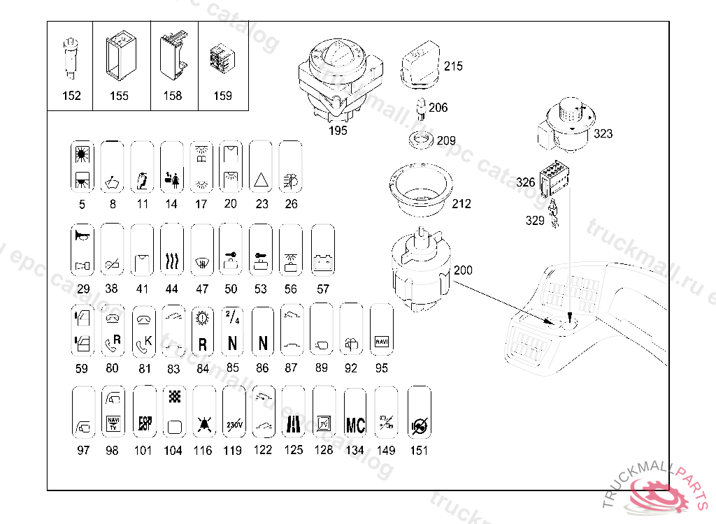 SWITCH LUGGAGE COMPARTMENT, ON THE LEFT
