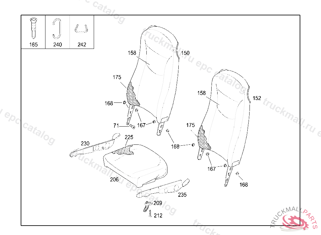 BACKREST RIGHT WITH THIN UPHOLSTERY, STATE IDENT NO. WHEN ORDERING