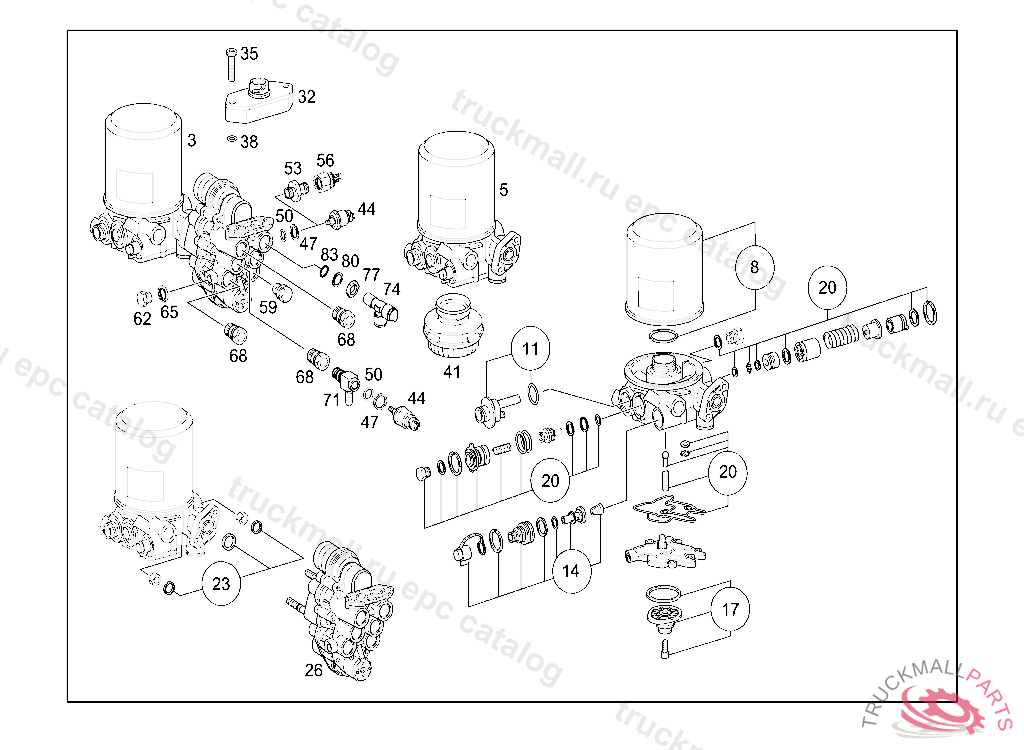 AIR DEHYDRATOR WITH FOUR-CIRCUIT PROTECTIVE VALVE KNORR, ORDER ADDITIONALLY: A 014 820 30 10