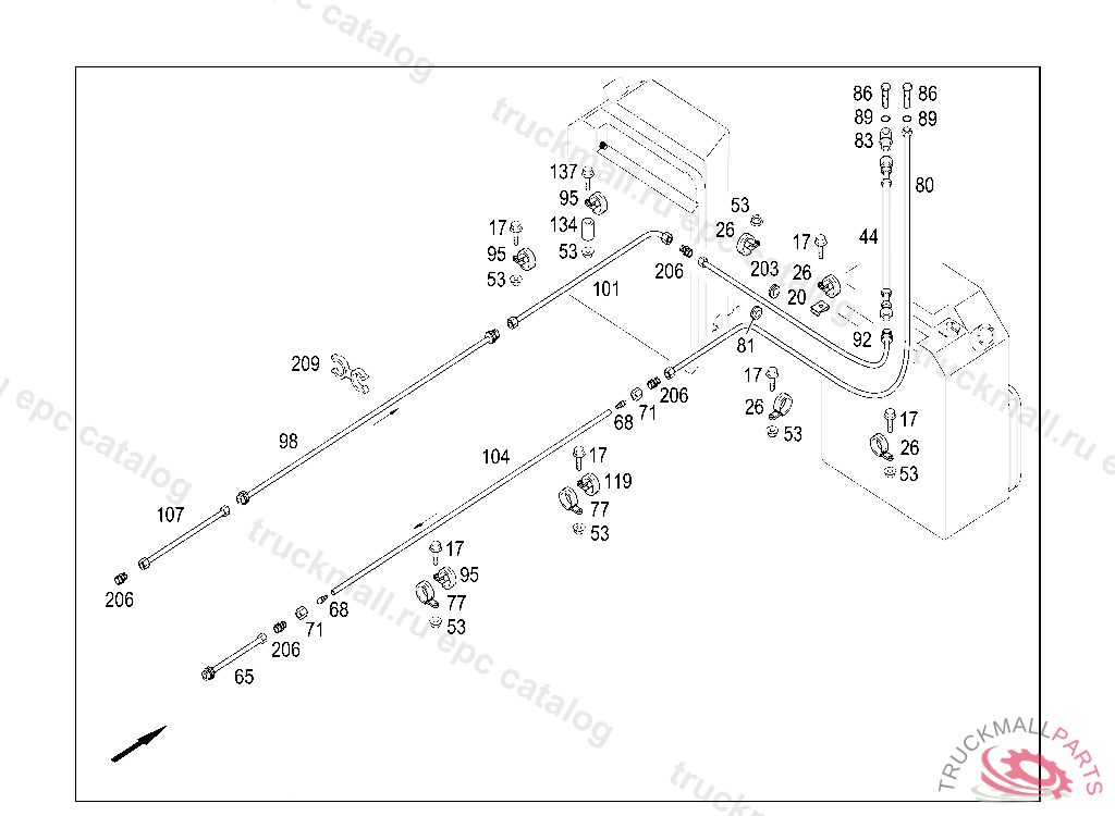 CLAMP DELIVERY AND SUCTION LINES TO ENGINE, FRONT
