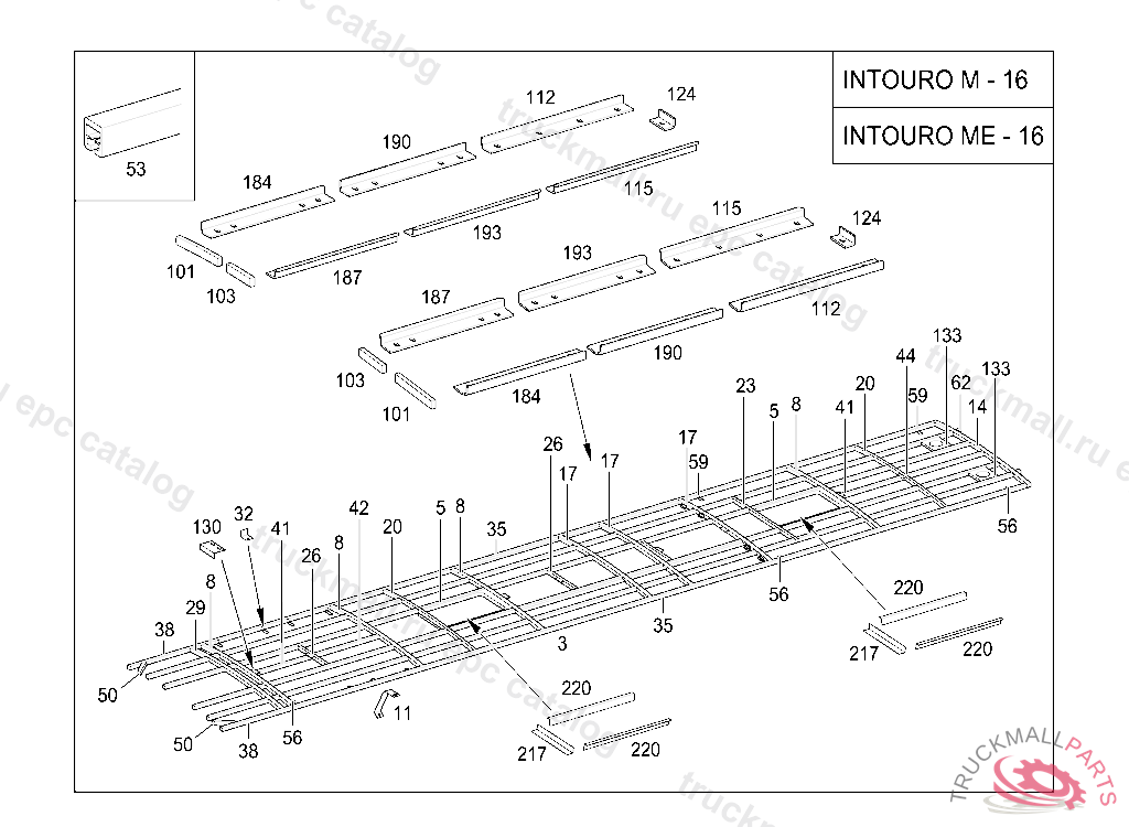 RAIL , A 627 651 03 38 RAIL 40 X 40 X 2230 MM TO BE ADAPTED DURING ASSEMBLY