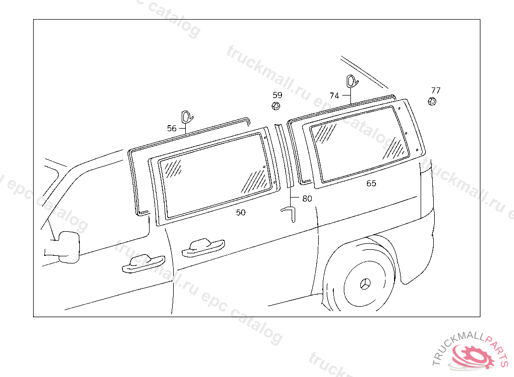 SIDE WINDOW , FIRST EXHAUST STOCK OF OLD PARTS UP TO IDENT NO. 053855, Replaced By: A6386703412