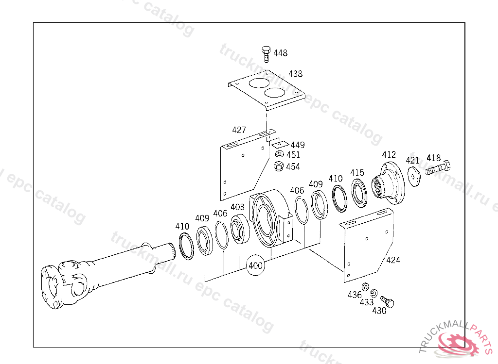 PROTECTIVE CAP FOLLOWER FLANGE, INTERMEDIATE BEARING, BALL BEARING IN RUBBER SEAT