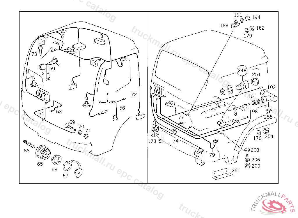 ELECTRIC CABLE FROM MODULE "M" TO ENGINE PLUG CONNECTION, THIS CABLE HARNESS IS A COMPONENT OF FRAME MOUNTED CABLE HARNESS ASSEMBLY AND CAN BE MADE AVAILABLE AS A SPARE ATTENTION: WHEN PLACING ORDERS, PLEASE QUOTE VEHICLE IDENT NO. ONLY IF FRAME MOUNTED CABLE HARNESS IS REQUIRED AS AN ASSEMBLYK 251256