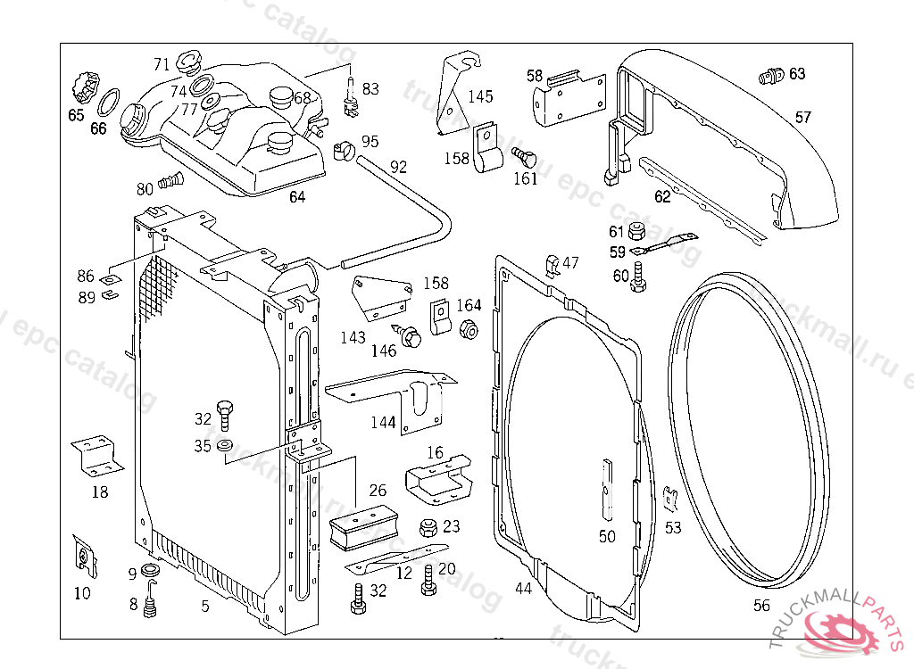 RADIATOR , FIRST EXHAUST STOCK OF OLD PARTS UP TO IDENT NO. 5 906164, Replaced By: A6505010601