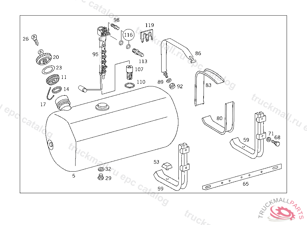 FUEL TANK , FIRST EXHAUST STOCK OF OLD PARTS UP TO IDENT NO. K 169122, Replaced By: A6524700101, +001A0005409917, +001A0115426017