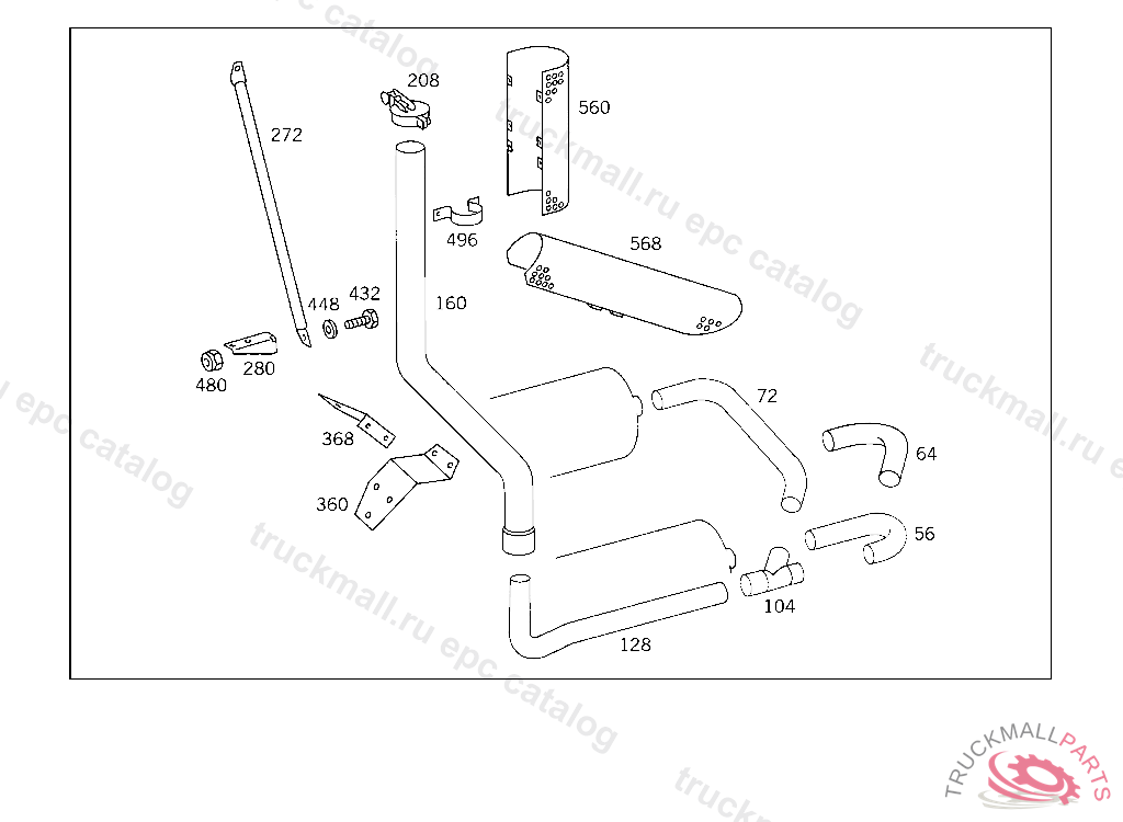 REAR EXHAUST PIPE FROM CONNECTION FITTING TO CAB REAR PANEL
