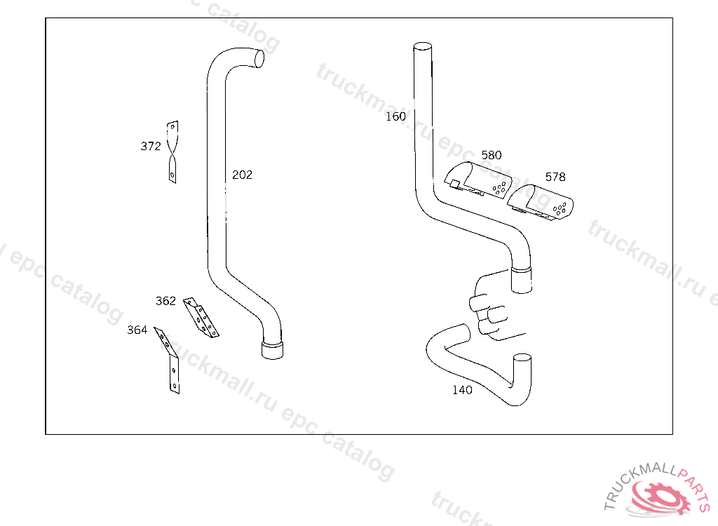 FRONT EXHAUST PIPE EXHAUST PIPE LEADING TO CAB REAR PANEL