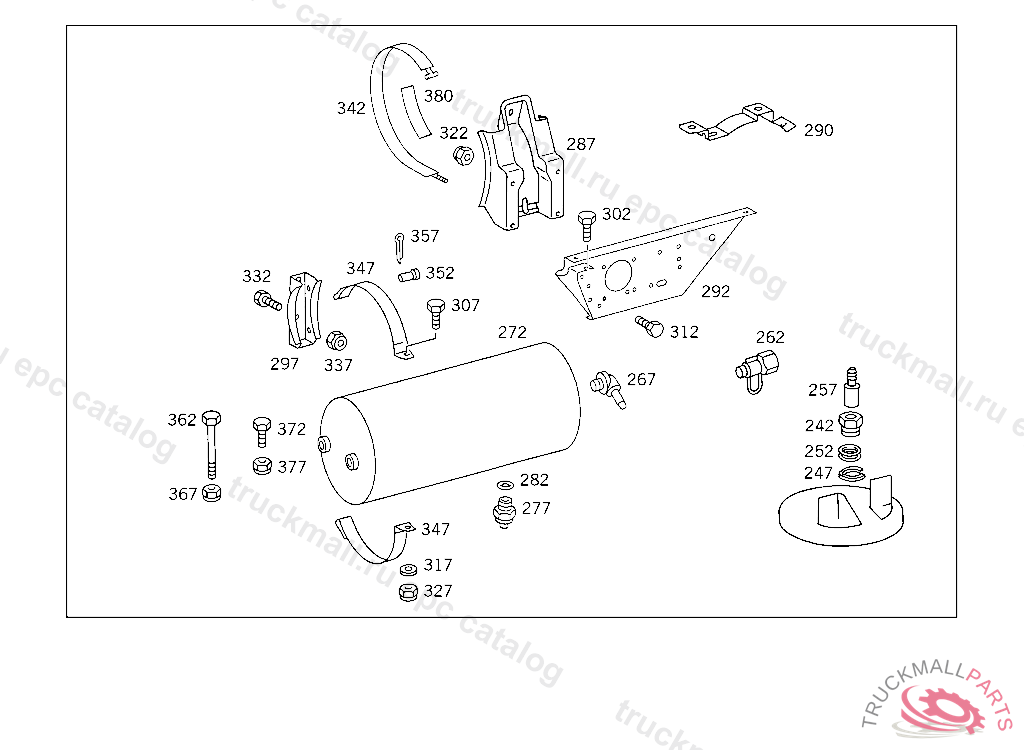 RESERVOIR20L, 276 MM, TO VOSS 232,5 934168 FOR VEHICLES WITH VOSS 230 CONNECTOR: ADD. MOUNT FITTING "A 004 997 82 72" WITH O-RING "A 000 987 04 46" AND THRUST RING "A 000 997 02 03" TO AIR RESERVOIR