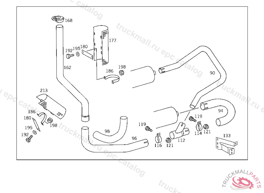 REAR EXHAUST PIPE FROM EXHAUST MUFFLER TO CAB REAR PANEL
