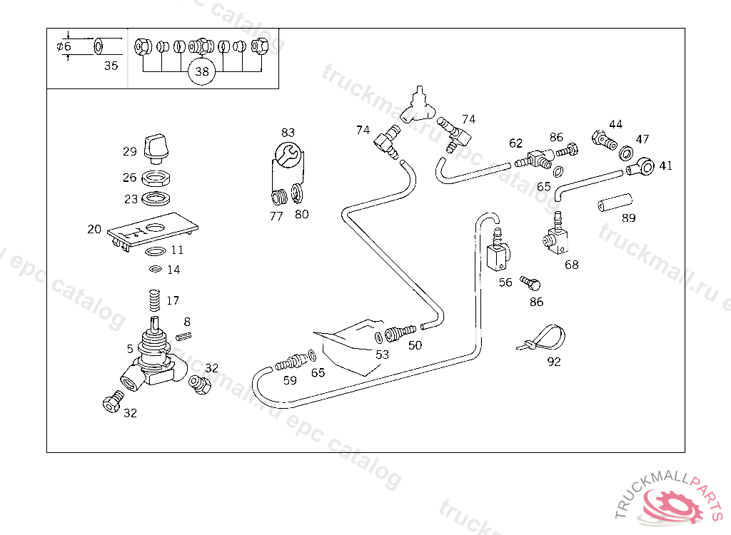 SCREW DELIVERY AND SUCTION LINES TO ENGINE, FRONT M 6X35