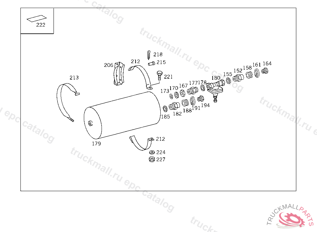 RESERVOIR20L, 276 MM, TO VOSS 232,5 934168 FOR VEHICLES WITH VOSS 230 CONNECTOR: ADD. MOUNT FITTING "A 004 997 82 72" WITH O-RING "A 000 987 04 46" AND THRUST RING "A 000 997 02 03" TO AIR RESERVOIR