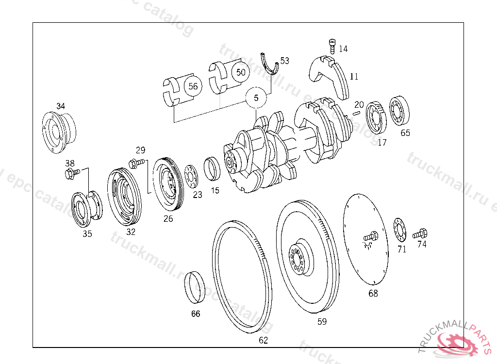 CRANKSHAFT WITH CRANKSHAFT BEARING SHELLS AND CONNECTING ROD BEARING SHELLS, EXHAUST STOCK OF OLD PARTS UP TO ENGINE 534173, Replaced By: A5420301201