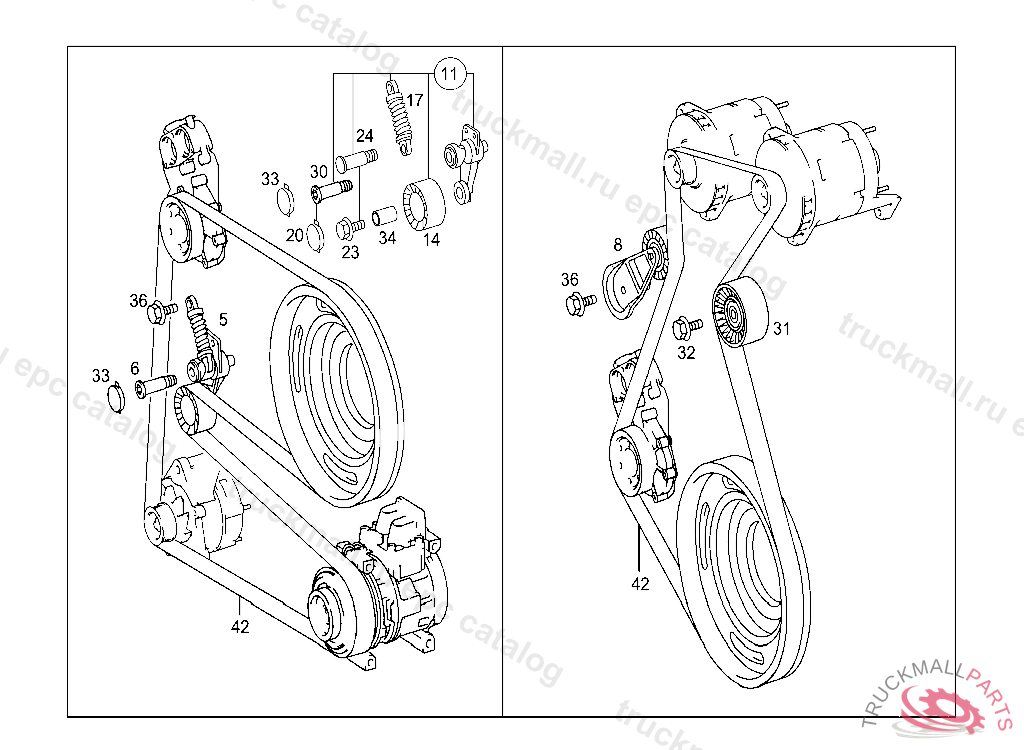 GUIDE PULLEY PARTS KIT, BELT TENSIONER MUST NOT BE REPAIRED, Replaced By: A0005502533