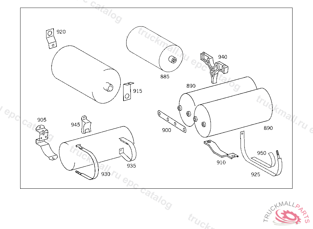 COMPRESSED AIR RESERVOIR. RESERVOIR6 L, TO VOSS 232, FOR VEHICLES WITH VOSS 230 CONNECTOR:ADD. MOUNT FITTING "A 004 997 82 72" WITH O-RING "A 000 987 04 46" AND THRUST RING "A 000 997 02 03" TO AIR RESERVOIR